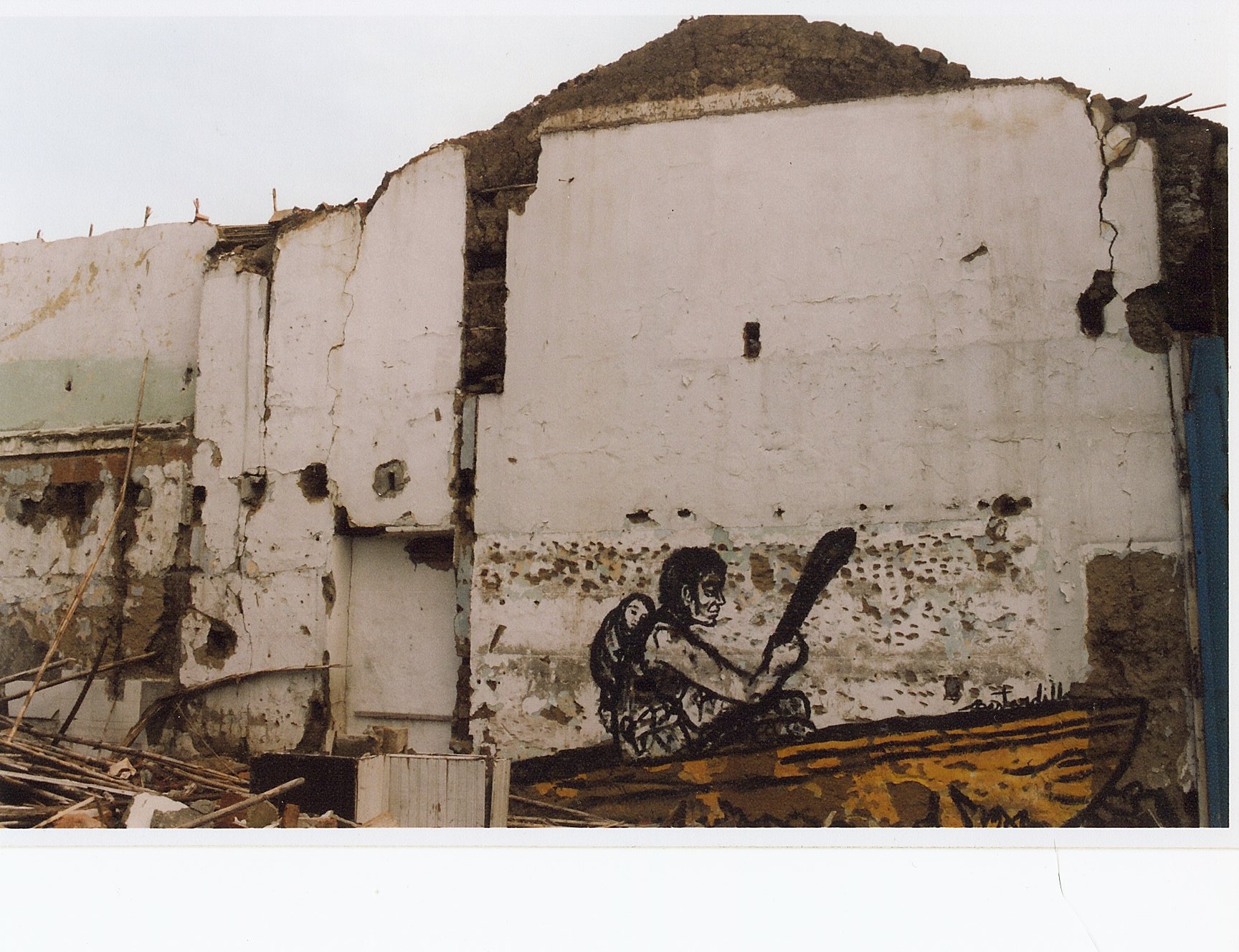 Found Object, pictures, bits of walls, silkscreen, other materials.
